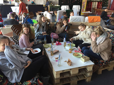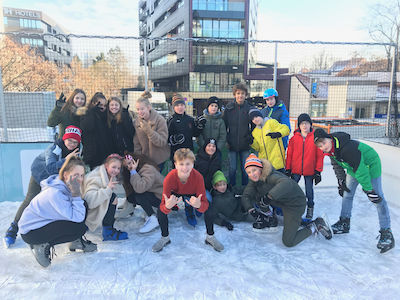 Zwei Tage zuvor besuchten wir die „Grazer Winterwelt“. Beim Eislaufen hatten wir an diesem Tag zeitweise die ganze Eisfläche nur für uns, was wir natürlich für eifriges Laufen und Üben nützten. Im Anschluss durften wir uns zum Aufwärmen in den Gastronomiebereich setzen, und wurden von Tobias Vater, Herrn Michael Feiertag, welcher die Grazer Winterwelt Jahr für Jahr organisiert, zu einem warmen Getränk und einem kleinen Imbiss eingeladen. Auch die Klassenwichtelgeschenke wurden gleich hier ausgetauscht.