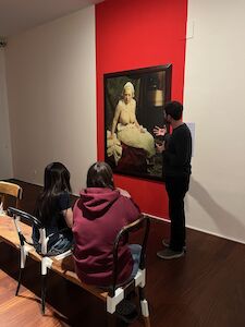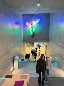 Im Rupertinum stand die Ausstellung Was Körper erzählen. Fotografie und Medienkunst von 1945 bis heute im Mittelpunkt; wir sahen Arbeiten von VALIE EXPORT, Julia Fuchs, Seiichi Furuya, Nan Goldin, G.R.A.M. und Cindy Sherman. Ergänzt wurde der Besuch durch die Personale Július Koller. U.F.O.-naut J.K., die Kollers künstlerische Strategie zeigte, den Alltag zur Kunst zu erklären und mit Witz und Ironie Widerstand gegen das autoritäre kommunistische Regime der damaligen Tschechoslowakei zu leisten. Mozart begegnete uns eindrucksvoll in der Ausstellung „Im Bann der Zauberflöte“. Die Zauberflöte zählt heute zu den populärsten und weltweit meistaufgeführten Werken des Musiktheaters und wirkt darüber hinaus als Inspiration für bildende Künstler:innen. Die Ausstellung präsentierte Werke von Oskar Kokoschka, Max Slevogt, Stephan von Hühn und Wolfgang Hutter. Besonders in Erinnerung bleiben uns Mozarts Taufbecken sowie das Schattenspiel „Vanitas“ des französischen Künstlers Christian Boltanski in der Chorkrypta des Salzburger Doms, die Werke von Anselm Kiefer in der Peterskirche sowie die Schwurhand und die Pacher-Madonna in der Franziskanerkirche.