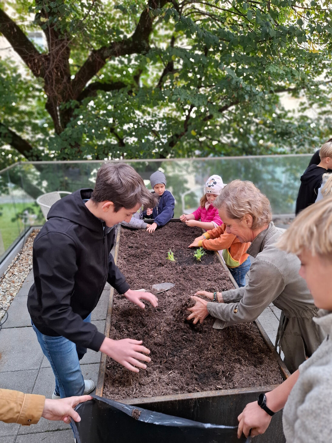 Heute war ein besonderer Tag: Zum ersten Mal wurde der Dachgarten unseres Zubaus im wunderschönen Lindenhof bepflanzt. Die bekannte ORF Bio-Gärtnerin und Buchautorin Angelika Ertl gestaltete die Bepflanzung gemeinsam mit Schülerinnen und Schülern des Bischöflichen Gymnasiums sowie der Delfinklasse der Praxisvolksschule.