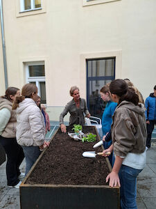 Angelika Ertl zeigte sich begeistert vom Engagement der Schülerinnen und Schüler – und auch der Lehrpersonen ;-) – und hat uns ihre Begleitung mit ihrer Expertise für das kommende akademische Jahr zugesagt. Darüber freuen wir uns ganz besonders. Gemeinsam wollen wir die Schulgärten am Campus weiterentwickeln und an mehreren Orten das Anbauen eigener Lebensmittel praktisch erfahrbar machen – für Schülerinnen, Schüler, Studentinnen und Studenten. Geplant sind unterschiedliche Beetarten, Bepflanzungstechniken sowie ein gemeinsamer Jahreslauf von Aussaat über Pflege bis zur Ernte – einrichtungsübergreifend, praxisnah und lebendig für die Beete und Schulgärten am Campus.