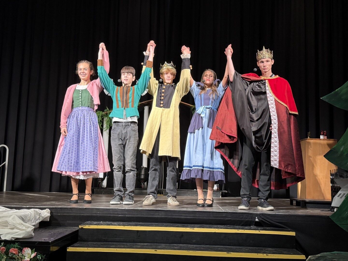Dass hinter der Bühne fast genauso viel passiert wie auf der Bühne, bleibt dem Zuschauer meist verborgen. So mussten bis zu 15 (!) Headset- und Mikrofonstrecken, mit mehr als 50 Wechsel, während der Aufführung bewältigt werden. Hinter den Kulissen sorgten 4 Techniker (aus den Reihen der SuS unserer Schule) in den Bereichen Licht-, Bild-, Sound- und Tontechnik für einen reibungslosen Ablauf. Die Qualität der 5 Aufführungen hat gezeigt, dass sich die einjährige Vorbereitungszeit, die Arbeit am Bühnenbild, die Auswahl der Kostüme und die technischen Anstrengungen auch ausgezahlt haben. Wir bedanken uns daher sehr herzlich bei allen, die auf der Bühne, hinter der Bühne, im Vorfeld oder in anderen Bereichen dazu beigetragen haben, Schneewittchen nicht nur durch einen Kuss zum Leben zu erwecken.
