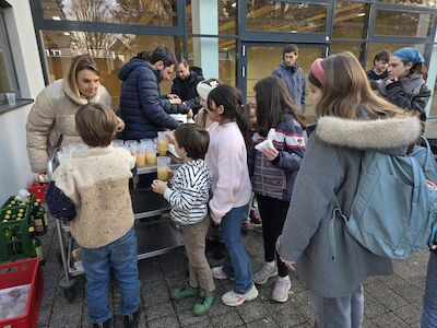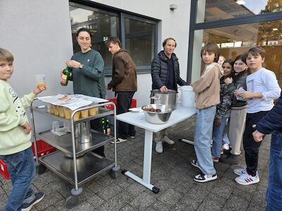 Gemeinsam wurden 30 Kilo Maroni gebraten und an Schüler:innen und unsere Gäste aus dem Kindergarten und der Praxisvolksschule ausgeteilt sowie gemeinschaftlich geteilt. Den Apfelsaft ließen wir uns dabei genauso gut schmecken wie die duftenden Maroni. Danke allen helfenden Händen und Meister:innen des gemeinschaftlichen Feuerhütens! Nicht nur das Feuer wärmte unsere Herzen, sondern auch die Gemeinschaft, die dort so deutlich spürbar war - ganz im Sinne unseres Jahresmottos „Herz(h)offen“.