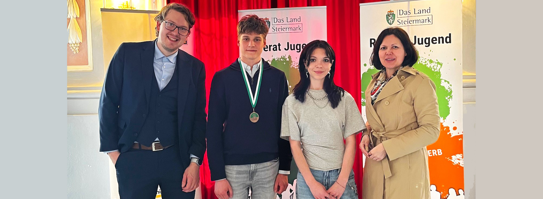 Beim Landesredewettbewerb 2026 haben Alexa Gössler (7C) und Paul Thelesklav (7A) unsere Schule würdig vertreten. Paul brillierte mit seiner Rede „Kampf der Gladiatoren“ und erreichte den dritten Platz.