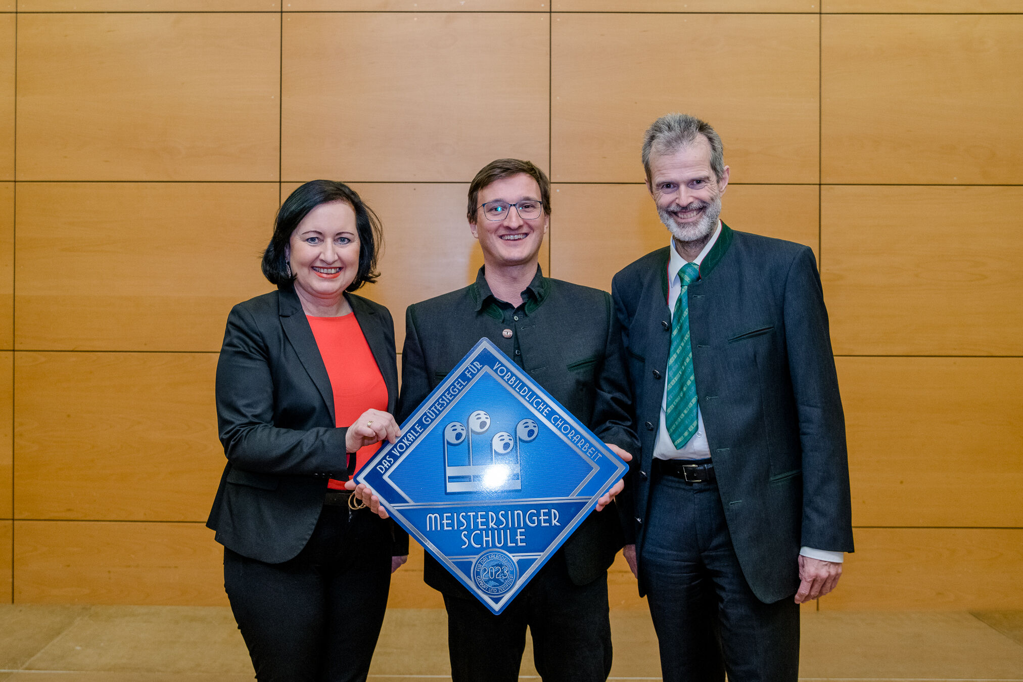 Als Meistersingerschule der ersten Stunde freuen wir uns auch im Jahr 2023 wieder über die begehrte Auszeichnung für vorbildliche Chorarbeit. Am 9. März wurde unsere Schule feierlich von Bildungsdirektorin Elisabeth Meixner, FI für Musikerziehung MMAg. Klaus Dorfegger und Mag. Valentin Zwitter, Projektentwickler Chorverband Steiermark (er durfte sich hier einmal selbst prämieren), ausgezeichnet.
