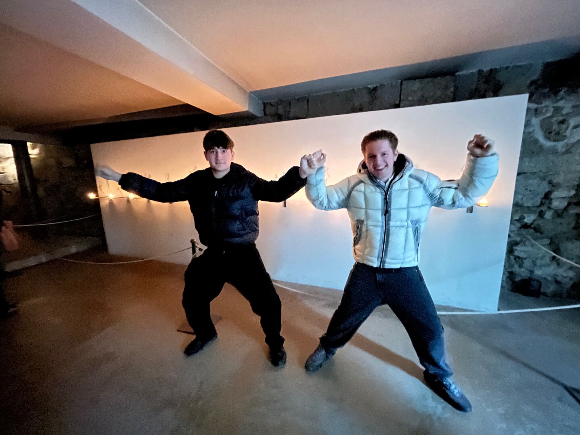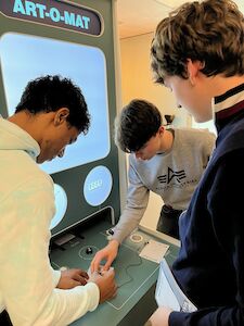 Im Museum der Moderne Mönchsberg besuchten wir mehrere Ausstellungen. Entropic Empire des niederländischen Künstlers Rob Voerman thematisierte das Spannungsfeld von Zerfall und Wachstum und regte zur Auseinandersetzung mit der Zukunft sowie dem Zusammenspiel von Wirtschaft, Ökologie und Gesellschaft an. In einem partizipativen Teil konnten wir selbst als „Architekt:innen“ tätig werden und utopische Bauwerke entwerfen. Die Ausstellung Cascade der britischen Künstlerin Nika Neelova führte in eine poetische Bildwelt, in der Vergangenheit, Gegenwart und Zukunft miteinander verschmelzen. Mit einem KI-Bildgenerator (ART-O-MAT) konnte jede:r von uns seine persönliche Zeichnung digital zum Leben erwecken.