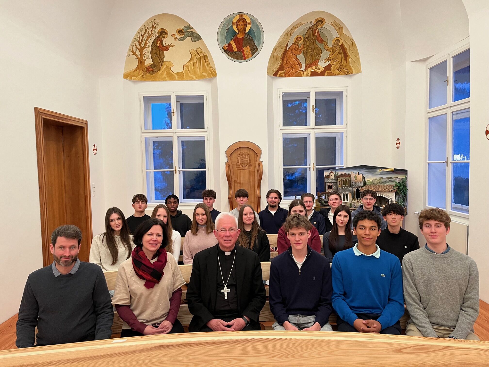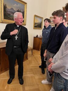 Das unbestrittene Highlight unserer Reise war der Empfang beim hochwürdigsten Herrn Erzbischof Dr. Franz Lackner in seiner Wohnung am Kapitelplatz. Eineinhalb Stunden lang nahm er sich Zeit für unsere Gruppe, schilderte seinen persönlichen Werdegang, motivierte zum Lesen und begeisterte uns für Philosophie. Er zeigte große Offenheit für unsere Gedanken und beantwortete unsere Fragen ausführlich und mit spürbarer Geduld. Besonders eindrucksvoll war seine Interpretation eines Bildes des heiligen Franziskus von Gerald Brettschuh, das er auf inspirierende Weise erläuterte. In seiner privaten Kapelle, gestaltet von Salzburger Künstlerinnen und Künstlern, beteten wir gemeinsam und empfingen schließlich den erzbischöflichen Segen – ein würdiger und berührender Abschluss unserer gemeinsamen Tage in Salzburg.