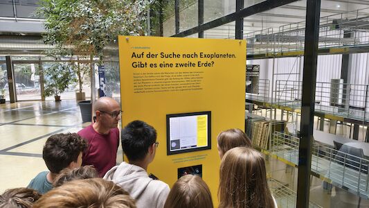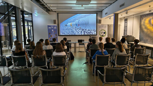 Im Anschluss wurde uns ein Video über die Mission Cheops zur Erforschung von Exoplaneten gezeigt. Daraufhin hat uns ein Wissenschaftler die Mission noch genauer erklärt.