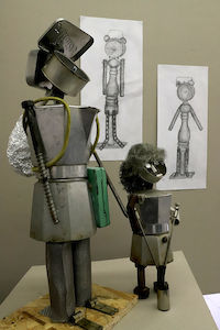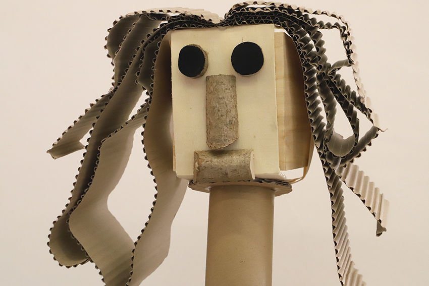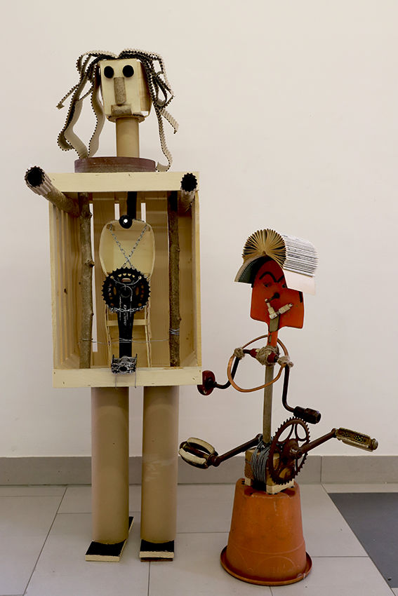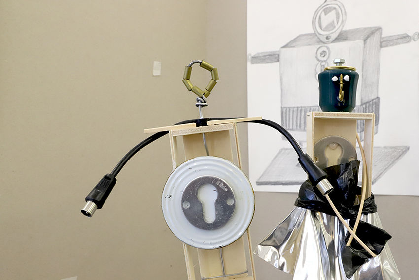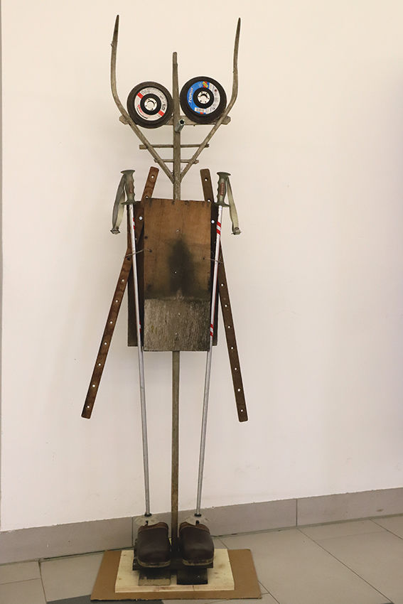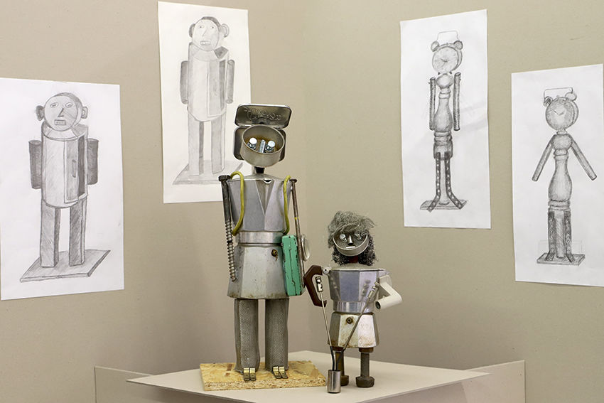 Bei den Arbeiten der heurigen Ausstellung der 5.Klassen am Kirchenvorplatz haben sich die SchülerInnen unter Anleitung der BE-Professorinnen Brigitte Schlager und Beate Faber mit dem Begriff „Objet trouvé“ auseinandergesetzt. Die Vorgabe einer Figurine wurde sowohl konkret als auch zeichnerisch mit Bleistift und Kreide umgesetzt.