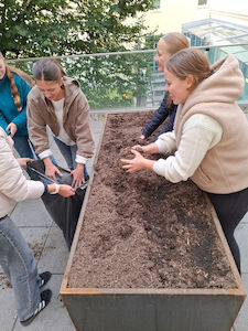 Angelika Ertl zeigte sich begeistert vom Engagement der Schülerinnen und Schüler – und auch der Lehrpersonen ;-) – und hat uns ihre Begleitung mit ihrer Expertise für das kommende akademische Jahr zugesagt. Darüber freuen wir uns ganz besonders. Gemeinsam wollen wir die Schulgärten am Campus weiterentwickeln und an mehreren Orten das Anbauen eigener Lebensmittel praktisch erfahrbar machen – für Schülerinnen, Schüler, Studentinnen und Studenten. Geplant sind unterschiedliche Beetarten, Bepflanzungstechniken sowie ein gemeinsamer Jahreslauf von Aussaat über Pflege bis zur Ernte – einrichtungsübergreifend, praxisnah und lebendig für die Beete und Schulgärten am Campus.
