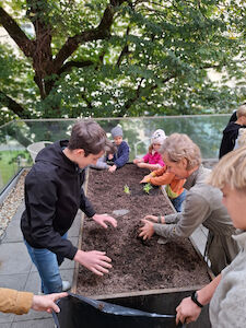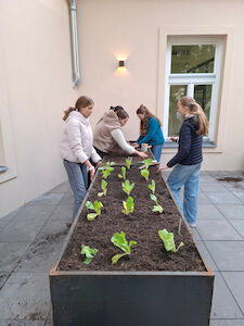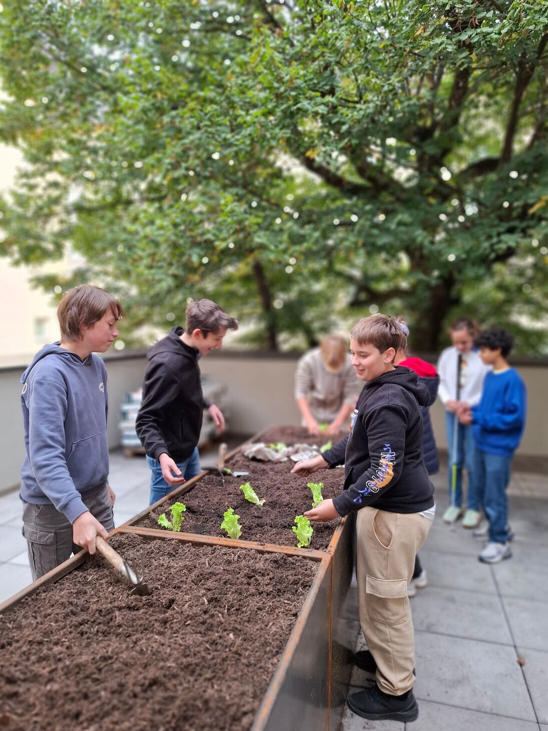 Mit viel Freude und Einsatz wurde tatkräftig gegärtnert: Erde aufbereitet, Wintersalate und Wintergemüse gesetzt. Keine Hand blieb sauber – und das sollte auch so sein! Die Ernte wird künftig für den Eigenbedarf unserer Prandia genutzt und unterstützt die Umsetzung der Planetary Health Diet, die wir in Zusammenarbeit mit Franz Prettenthaler und dem Joanneum Research LIFE Institut eingeführt haben.