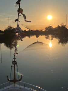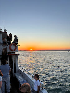 Besonders in Erinnerung bleibt uns auch die romantische Bootsfahrt durch die Lagune bei Sonnenuntergang und herrlicher Fernsicht auf die Alpen. Die Atmosphäre war unbeschreiblich, nicht zuletzt wegen des sehr charmanten Kapitäns, der mit Witz und italienischem Charme alle zum Lächeln brachte.