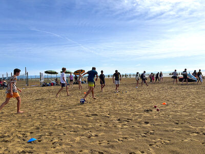 Das Programm bot eine tolle Mischung aus verpflichtenden Aktivitäten und wählbaren Sportarten. Wir probierten Beach-Tennis, Beachvolleyball und Stand-Up-Paddling aus. Durch die Mitnahme der eigenen Räder konnten wir alle Sportanlagen und das Zentrum am Abend schnell erreichen. In den Pausen entspannten wir am Strand oder spielten Boccia im Sand. Auch ausgedehnte Strandspaziergänge nützten wir, um uns gut kennenzulernen. Ein absolutes Highlight war das Mega-SUP: Gemeinsam paddelten wir als ganze Gruppe über die Wellen – ein echtes Team-Erlebnis! Wer wollte, konnte auch an geführten Radtouren teilnehmen. Ein gemeinsamer Spieleabend half, die Klassengemeinschaft zu stärken.