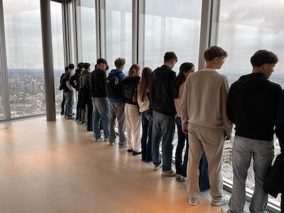 Eine Gruppe von 52 SchülerInnen machte sich am 10. Oktober 2025 gemeinsam mit Frau Prof. Stelzer-Brandl, Frau Prof. Treuer, Frau Prof. Krifka-Pfaffenwimmer, Frau Prof. Gudenus und Herrn Prof. Krejan auf den Weg nach London, der lebhaften Hauptstadt des Vereinigten Königreichs. Schon beim Abflug herrschte große Aufregung und Vorfreude auf die bevorstehenden Tage voller neuer Eindrücke, spannender Erlebnisse und natürlich speaking English only.