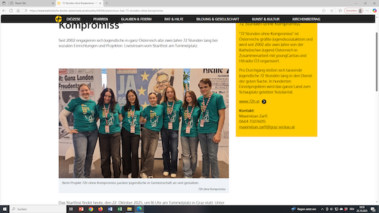 "72 Stunden ohne Kompromiss" ist Österreichs größte Jugendsozialaktion und wird seit 2002 alle zwei Jahre von der Katholischen Jugend Österreich in Zusammenarbeit mit youngCaritas und Hitradio Ö3 organisiert. Pro Durchgang stellen sich tausende Jugendliche 72 Stunden lang in den Dienst der guten Sache. In hunderten Einzelprojekten wird das ganze Land zum Schauplatz gelebter Solidarität.