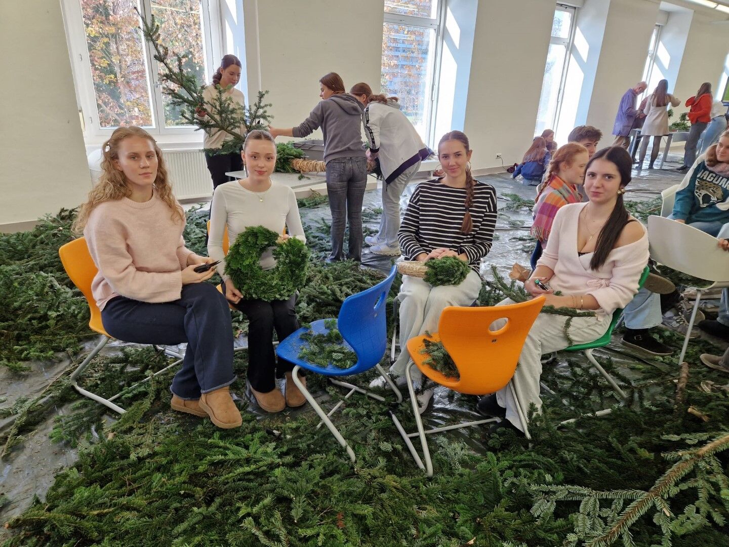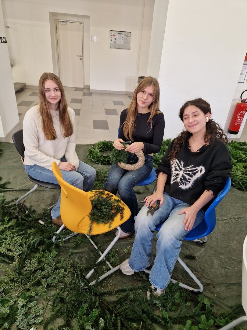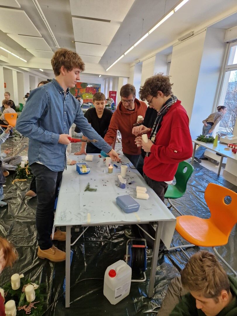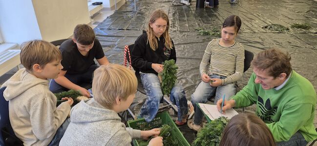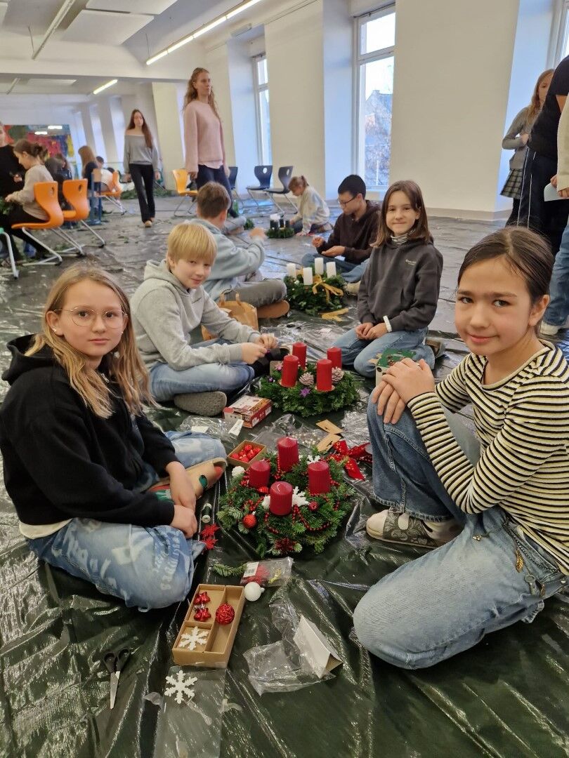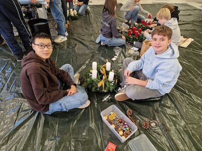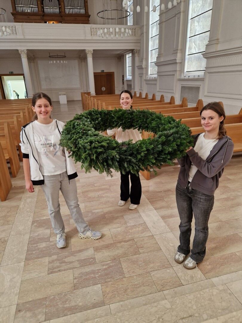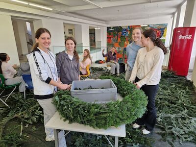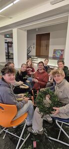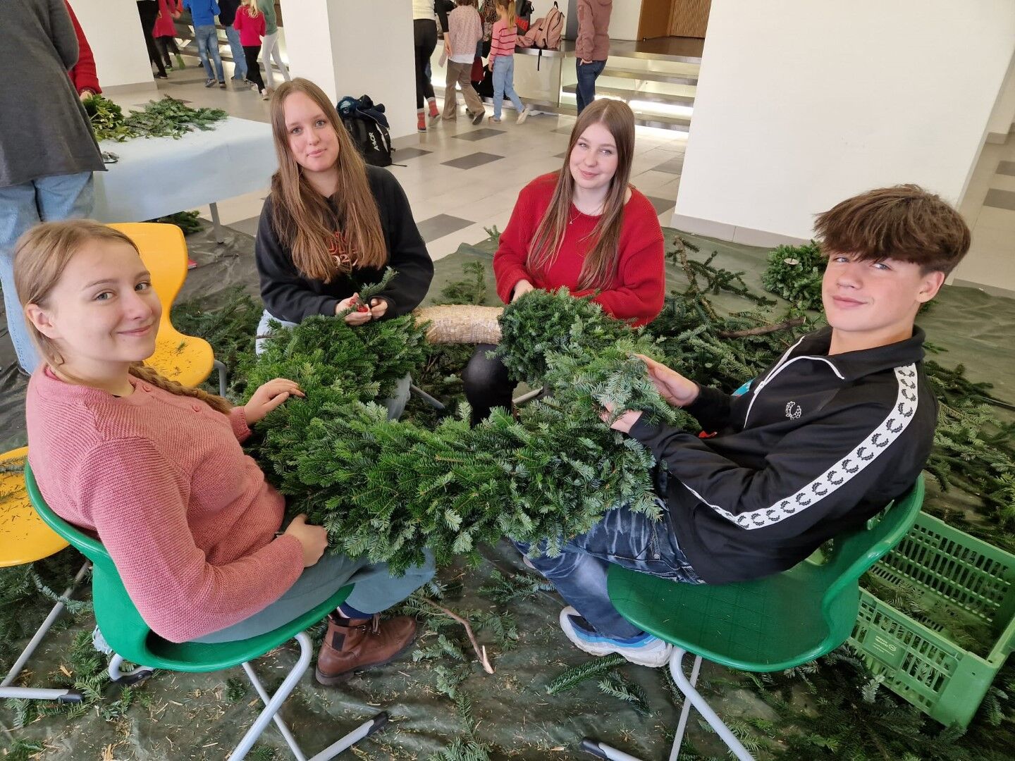 70 Schülerinnen und Schüler binden aus diesem Grund große und kleine Adventkränze für ihre jeweiligen Klassen und für viele Institutionen im Augustinum.