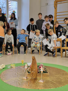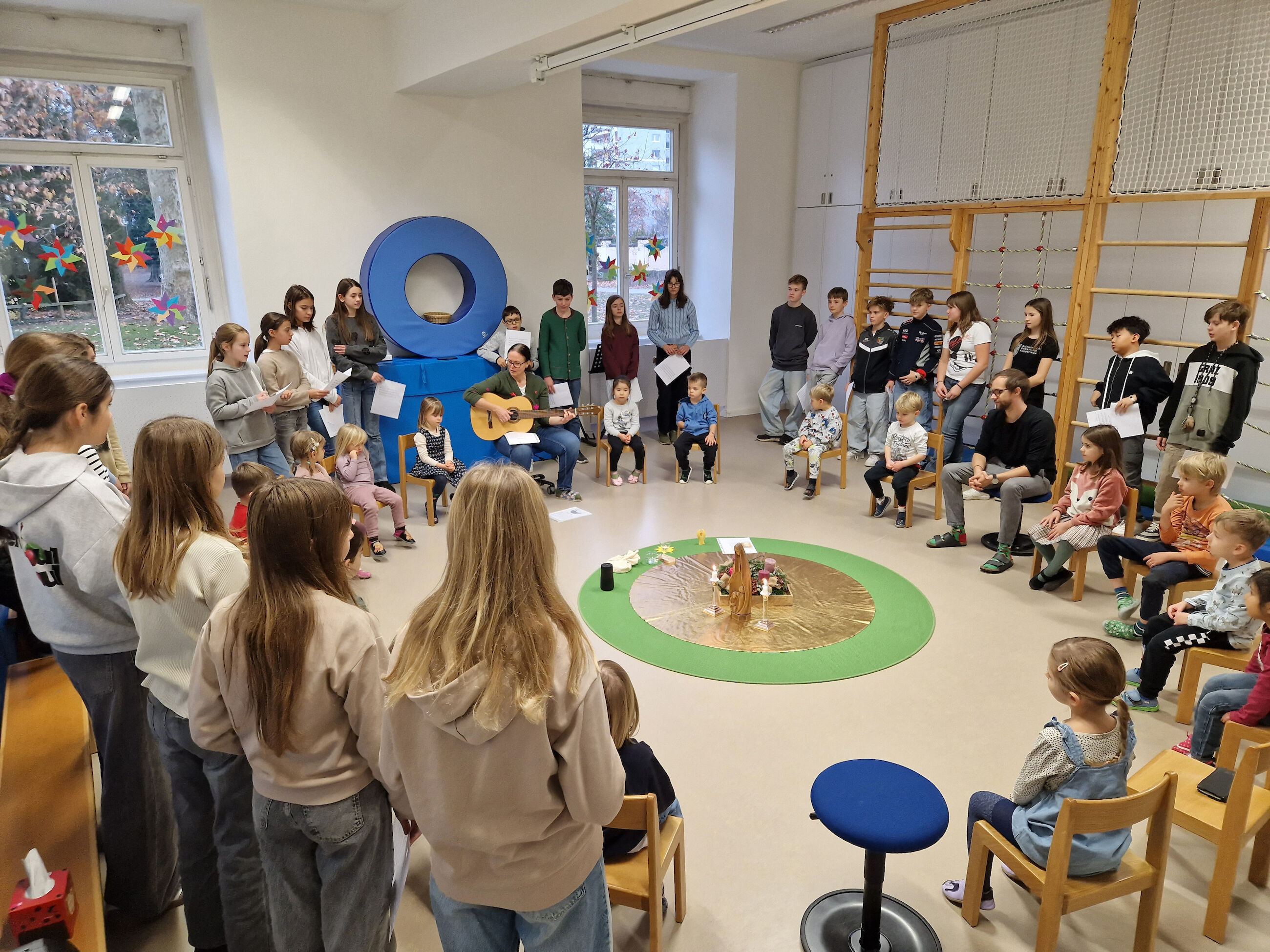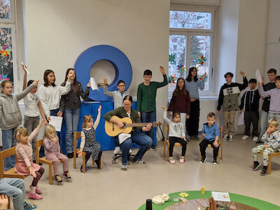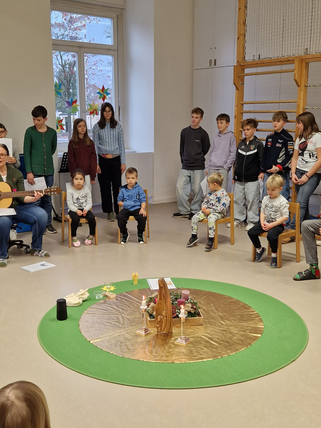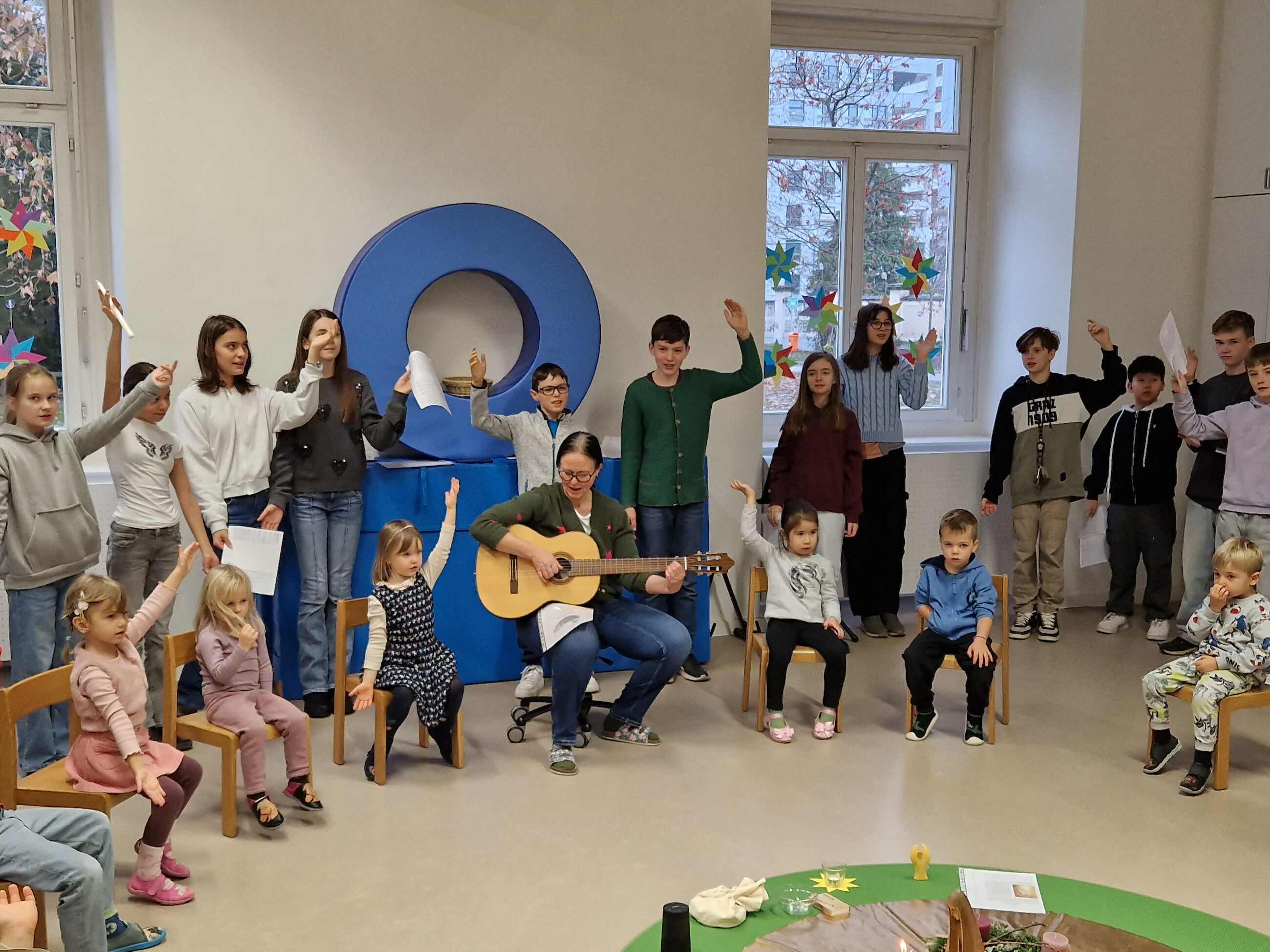 Schüler*innen der 2B-Klasse baten um Aufnahme im privaten Kindergarten im Haus und wurden von leuchtenden Kinderaugen liebenswert empfangen. Abwechselnd wurden Lieder gesungen und Geschichten erzählt, bis eine Tanzperformance den netten Besuch abschlossen.